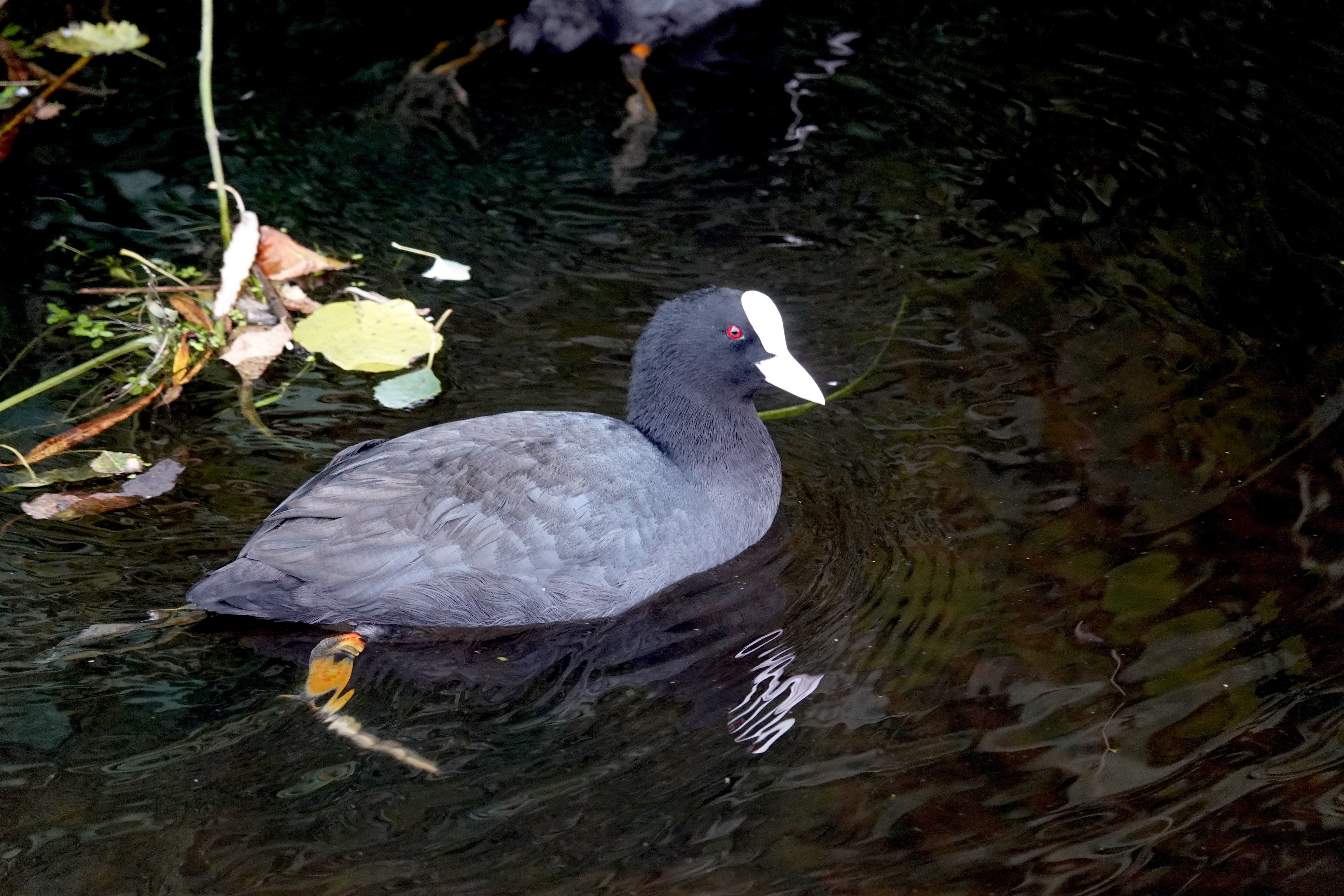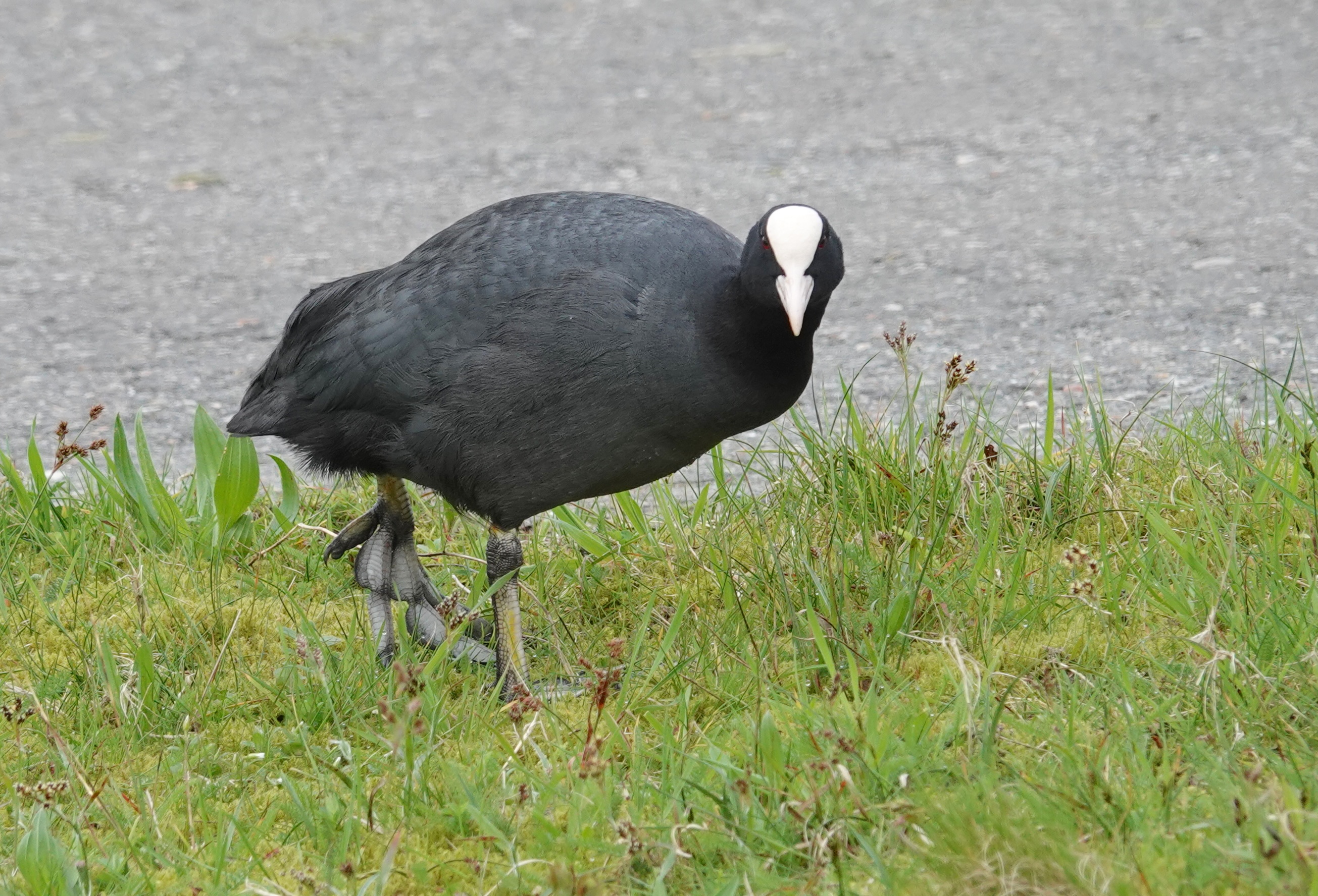 Een van de meest herkenbare watervogels op onze golfbaan is waarschijnlijk de meerkoet (Fulica atra). Met zijn zwarte verenkleed, rode ogen, witte snavel en dat kenmerkende witte "voorhoofdsschild" ziet de meerkoet eruit alsof hij altijd klaar is voor een belangrijk duel. Zijn poten zijn indrukwekkend groot en dragen zogenaamde zwemlobben in plaats van zwemvliezen, waarmee hij zich behendig door het water beweegt.