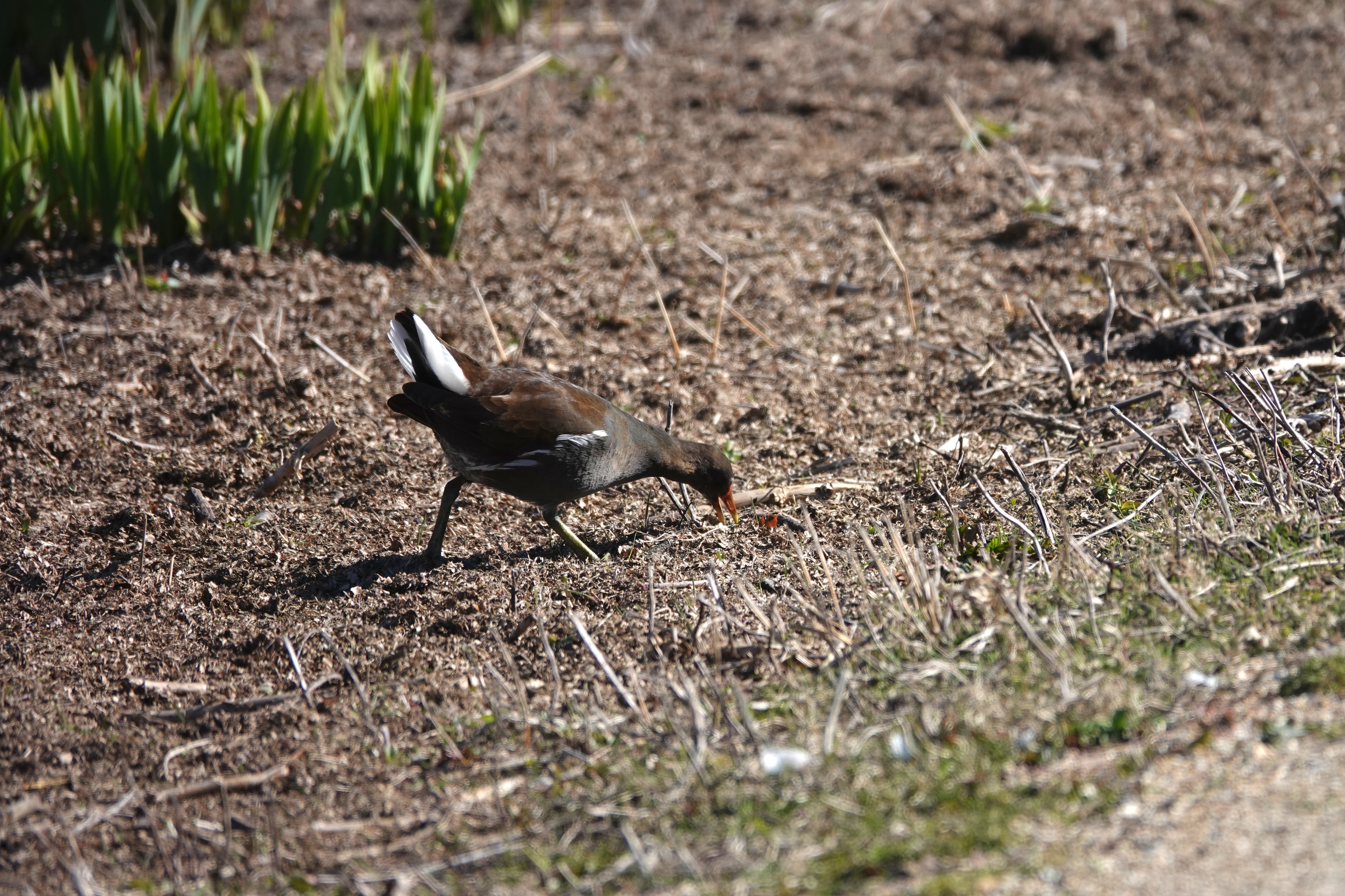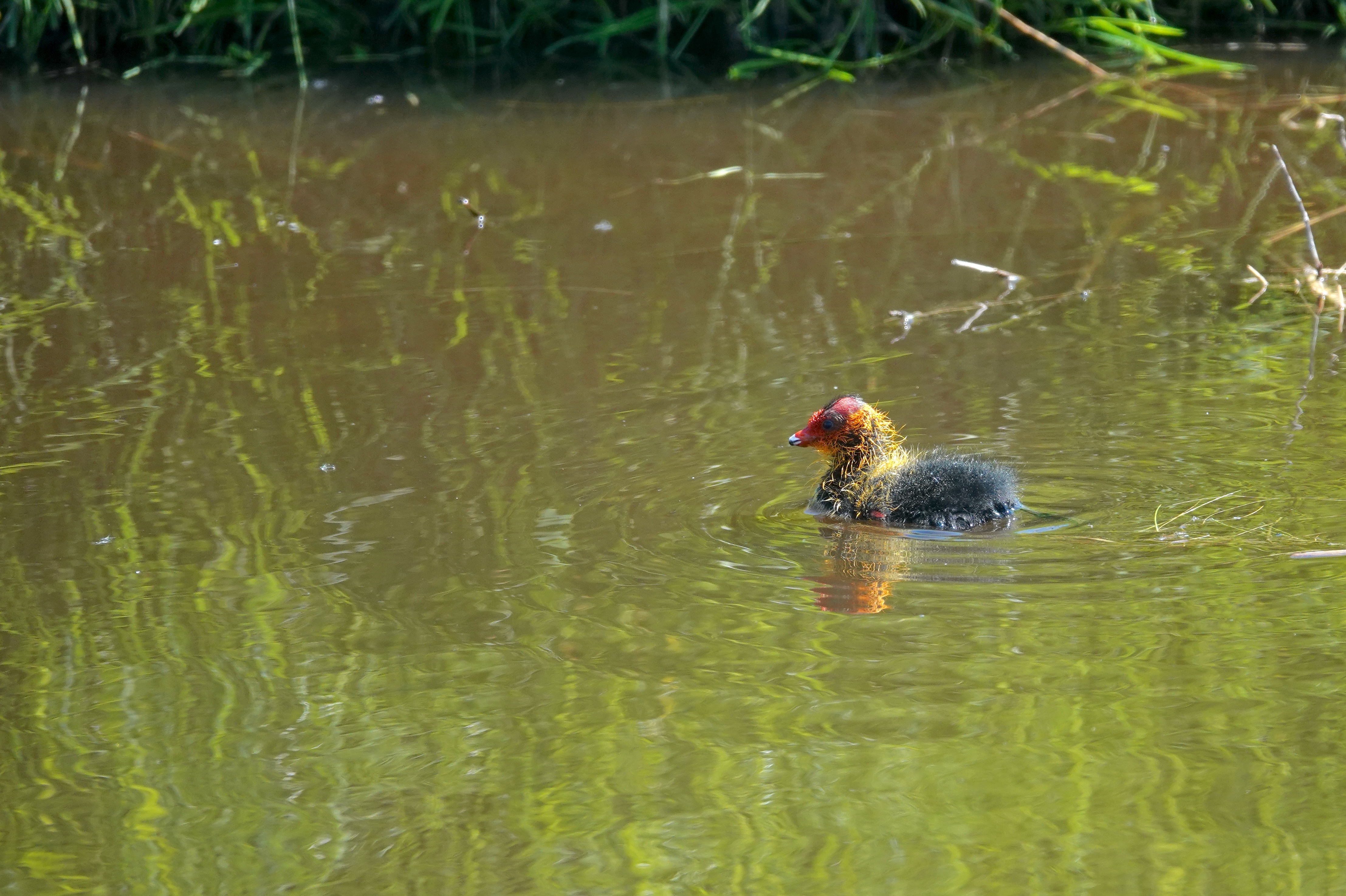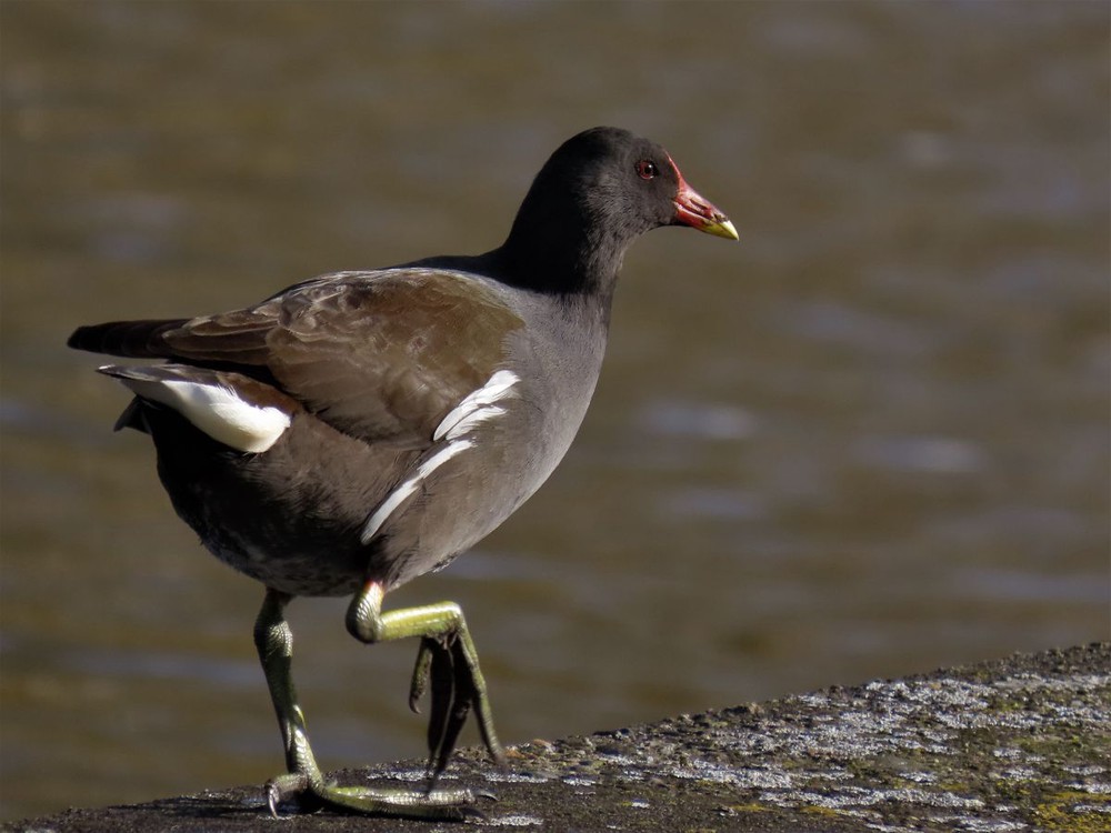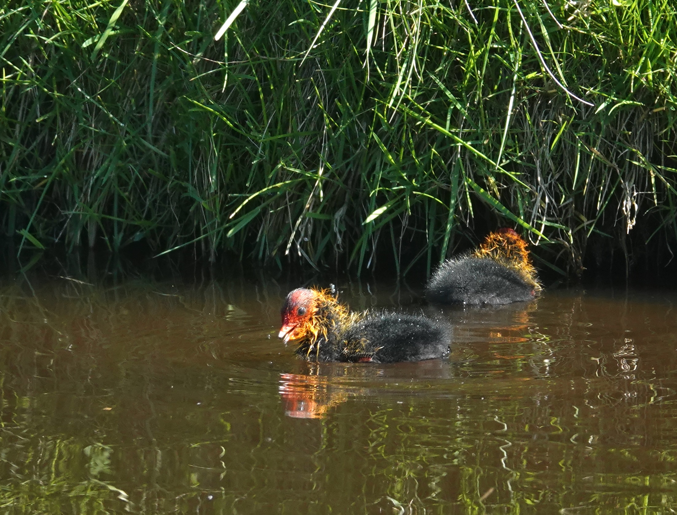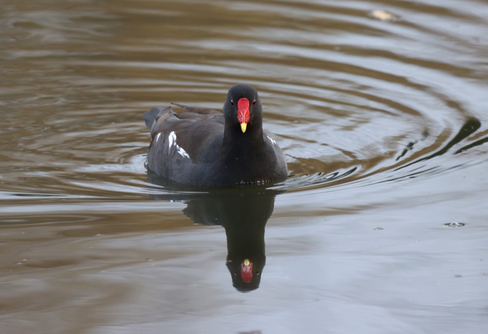 Op dezelfde plekken kom je ook het waterhoentje (Gallinula chloropus) tegen, een soort die vaak met de meerkoet wordt verward. Toch zijn er duidelijke verschillen. Het waterhoentje is wat slanker en eleganter, met een rode snavel met een geel puntje en een rood voorhoofdsschild. Zijn verenkleed is donkergrijs tot zwart, met witte strepen langs de flanken en een opvallend witte onderstaart die vaak opwipt tijdens het lopen. De poten zijn groenachtig met opvallend lange tenen, ideaal om over waterplanten en modderige oevers te stappen.