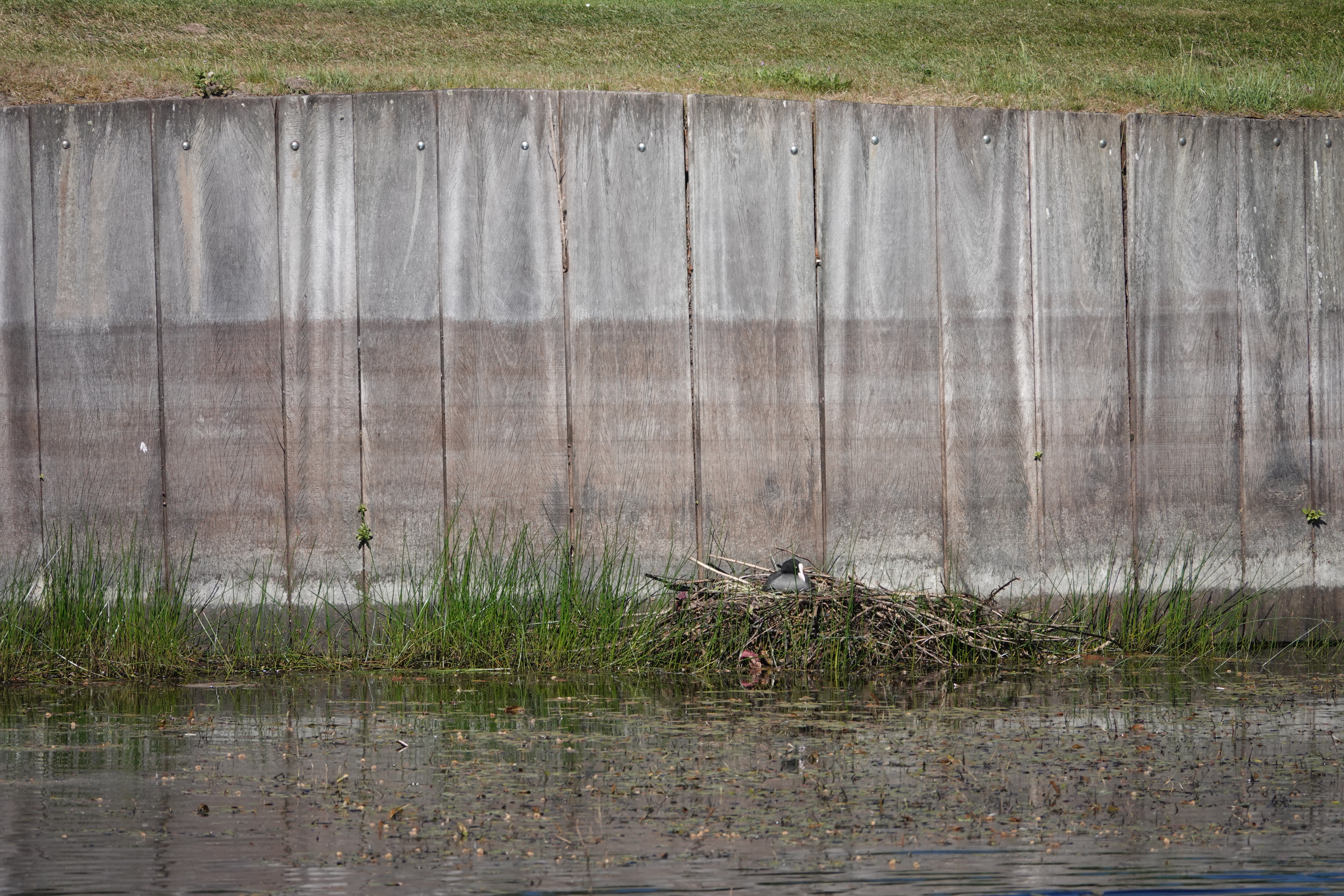 Meerkoeten zijn echte druktemakers: ze zwemmen energiek rond, maken een hoop kabaal en jagen zonder aarzelen andere vogels weg als die te dichtbij komen. Bijna in elke vijver op de baan zit wel een nest van een meerkoetenpaar. Dat nest wordt stevig gebouwd van riet en takjes en ligt vaak drijvend of tegen de oever aan.
